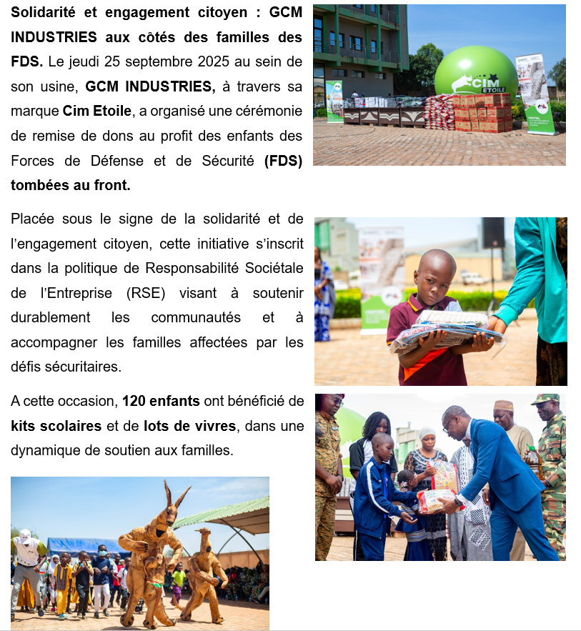 Solidarité et engagement citoyen : GCM INDUSTRIES aux côtés des familles des FDS Laisser un commentaire / new / Par Mariam MAIGA